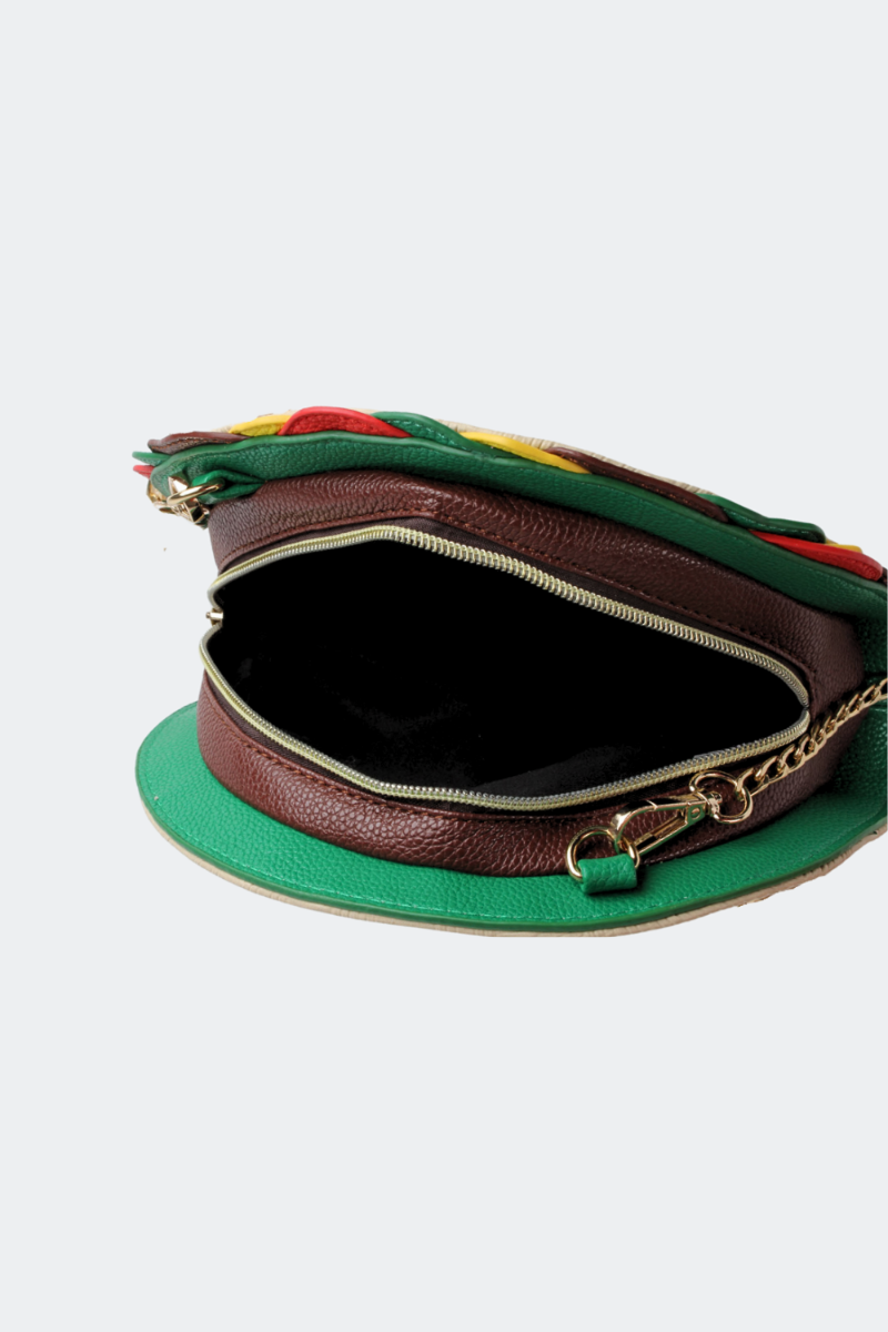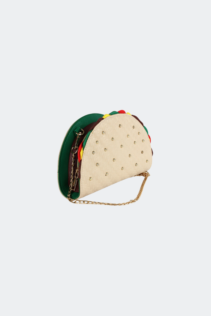 Retro taco crossbody bag, featuring stud detail and detachable gold tone chain. Including a dust bag. Can be worn as a shoulder bag.