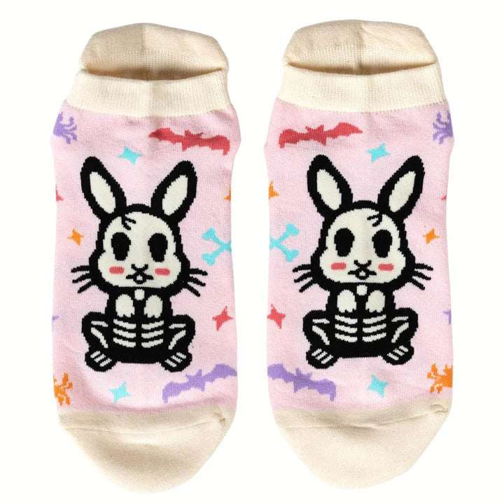Not all bunnies are fluffy, but everybunny has a skeleton! Our deathly cute Skelly Bunnies are here to steal your heart — okay, mainly because theirs fell out. We're not sure how they got this way (maybe a vast misunderstanding of the concept of Easter), but they're ready to be your best friends... for eternity. If you like to hop along the path to joyful darkness on the line between cuddly and morbid, your true companions are waiting for you right here at the crossroads of coccyx and cottontail.